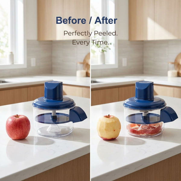 SwiftPeel™ is a rechargeable electronic peeler that removes skins evenly in seconds, so prep feels effortless and your kitchen stays calm.